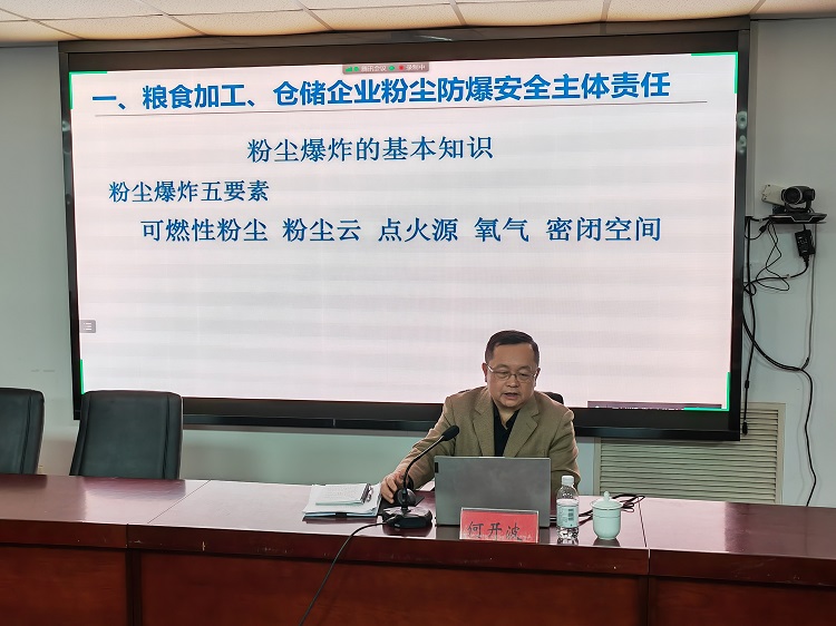 刘萍充分肯定了过去一年全省粮食和储备行业安全生产工作取得的成绩,强调要把思想和行动统一到党中央国务院决策部署上来,统一到省委省政府工作要求上来,不断增强做好安全生产工作的责任感、使命感、紧迫感,突出重点,集中攻坚,全面排查整治隐患,以“时时放心不下”的责任感,切实筑牢行业安全生产防线。 会上,青岛市发展改革委一级调研员何开波同志从落实企业主体责任、粮食和储备行政部门监管责任,预防谷物磨制和仓储企业粉尘爆炸事故进行授课。